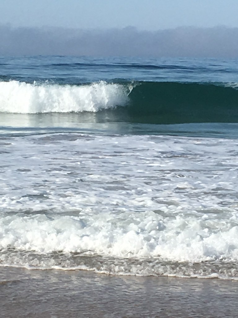 The beach is not particularly safe for swimming, but many were trying to fish, and surfers bobbed in the waves. Wet suits are needed for the bracing chill of the water. This beach provides a beautiful walk for those who are not enticed into the furious waves. East Cape beach is a little less ferocious and there were quite a few families in the water, although still mostly in wet suits. Definitely boogie board and body surfing territory.