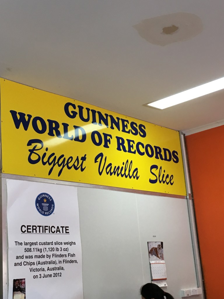 Unfortunately, not far away in Flinders is the Guiness Book of Records largest Vanilla Slice. Naturally I couldn’t resist. Two of us couldn’t finish one serve, but we gave it a jolly got shot.