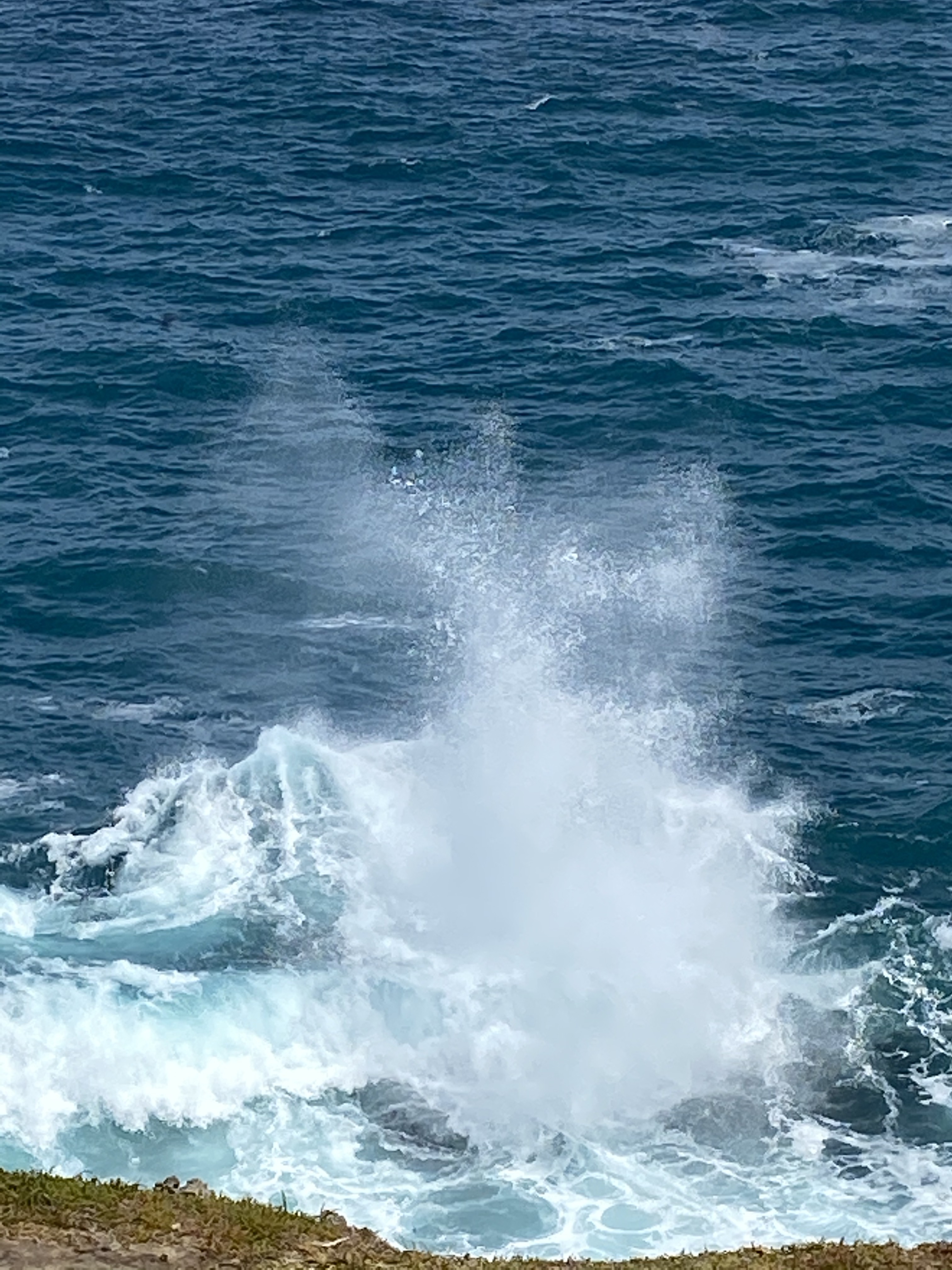 The Blow Holes were spraying high and the blue of the sea was brilliant. The access to the viewing platform is easy and we watched the spray hitting great heights for quite a while. Excellent view from way up high.