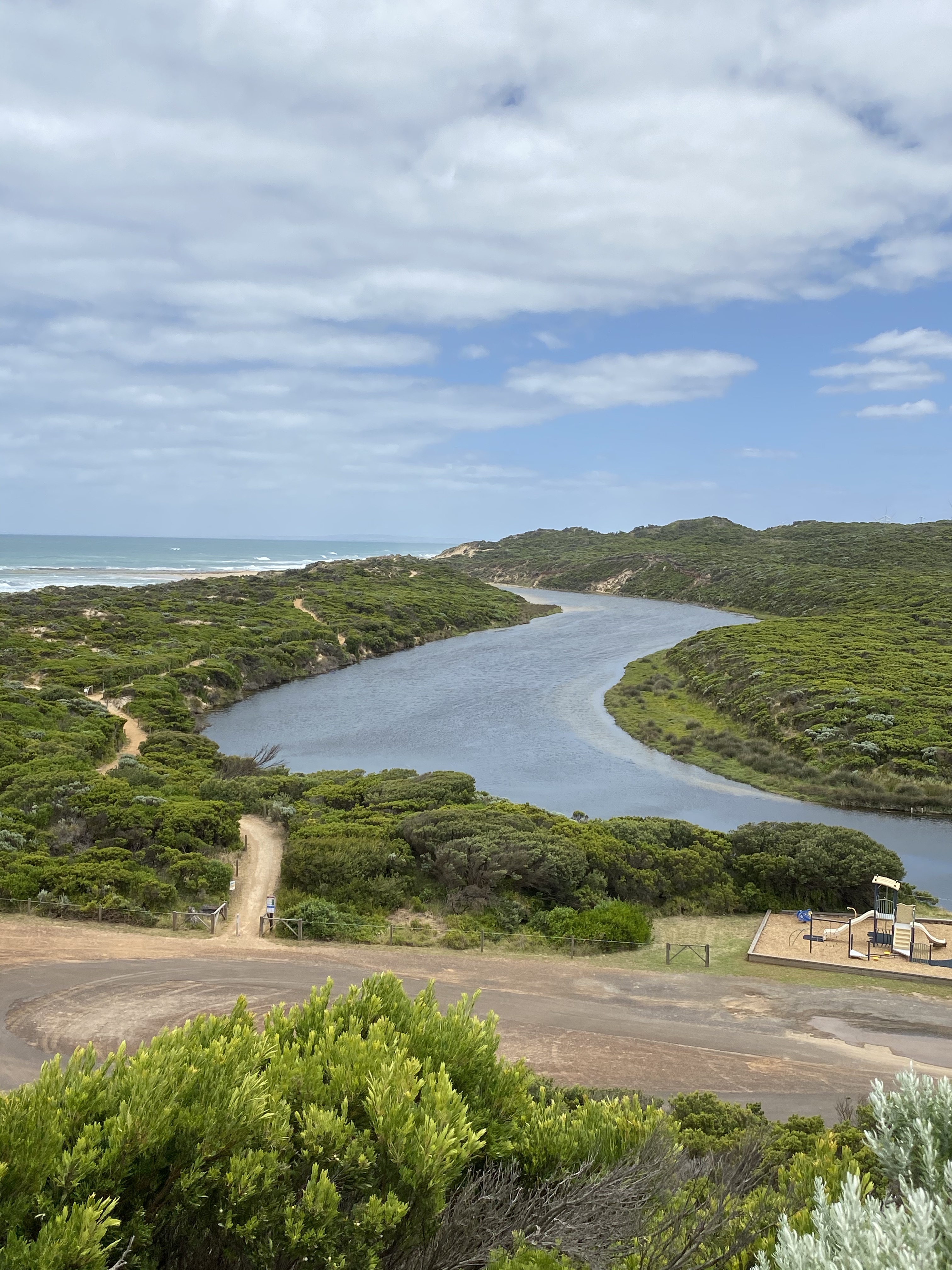 A short drive from Port Fairy is Yambuck Lake. There is a small caravan park tucked away in a very pleasant quiet spot for those wishing to avoid bustle…except when kids arrive to use the Yambuck Slide! We decided not to try the slide, preferring to avoid potential damage to our bodies, and instead enjoyed the walk to the mouth of the river. There was not much to see when we got there, but the walk itself was very pretty and recommended.