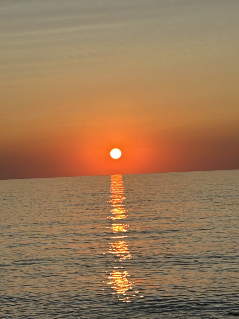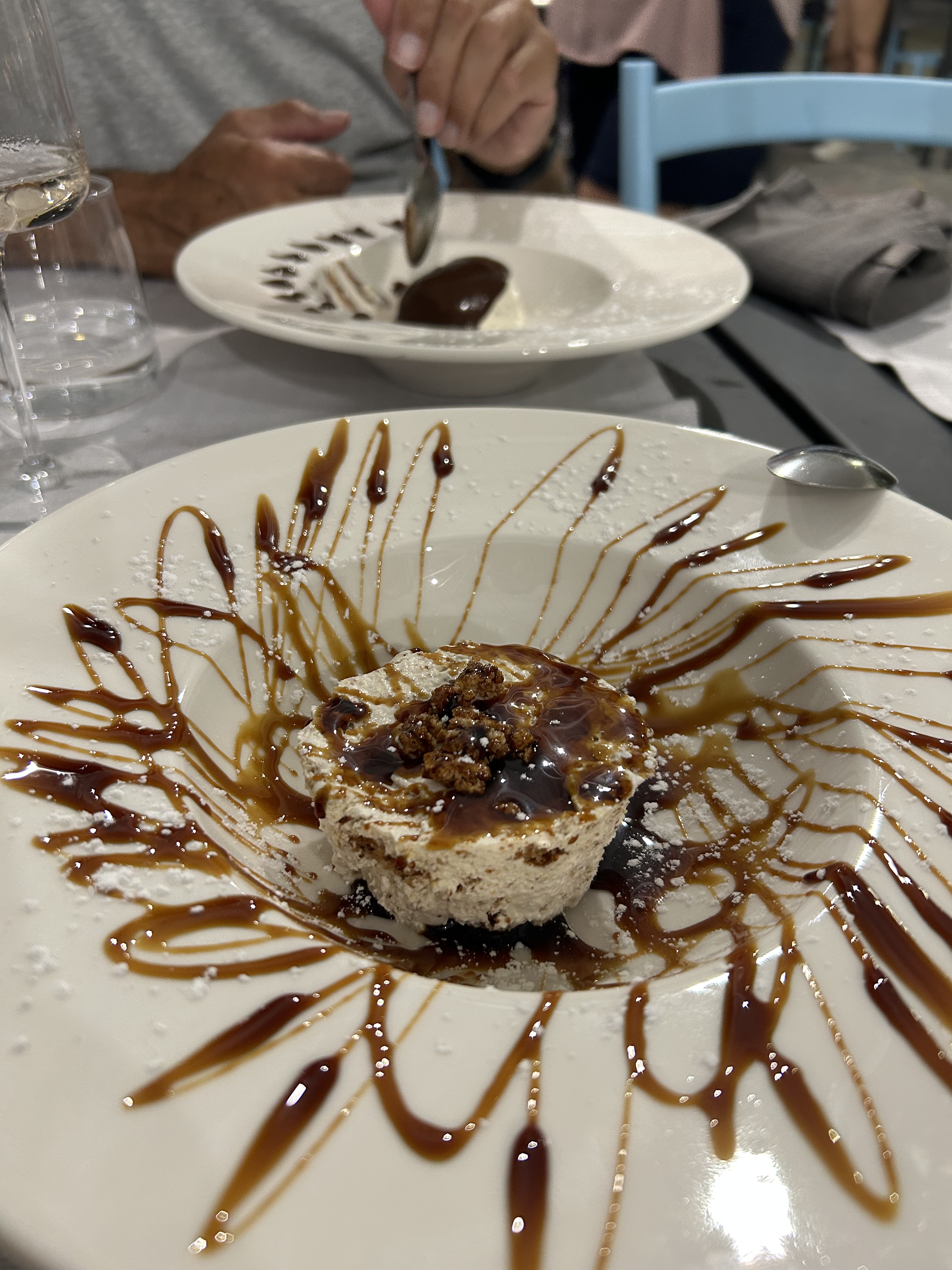 Most nights we cooked and ate in the apartment watching the sunset from our balcony before an evening stroll, however we did sample the most amazing pizzas at one of the Beach Bar restaurants. The pizzas were enormous. The dough was superb, so good i was annoyed i couldn’t finish it!! For the second time i was drawn to the ‘sausage’ pizza. And again, the sausage i thought would be some type of home made speciality ended up being a frankfurt, a blooming hot dog sausage. I couldn’t believe i fell for it a second time. We it picked off and told the waiter it was a no no in Australia. He was highly amused. The semi freddo dessert was delicious, even though it looked like the chef had gone a bit wild with the sauce.