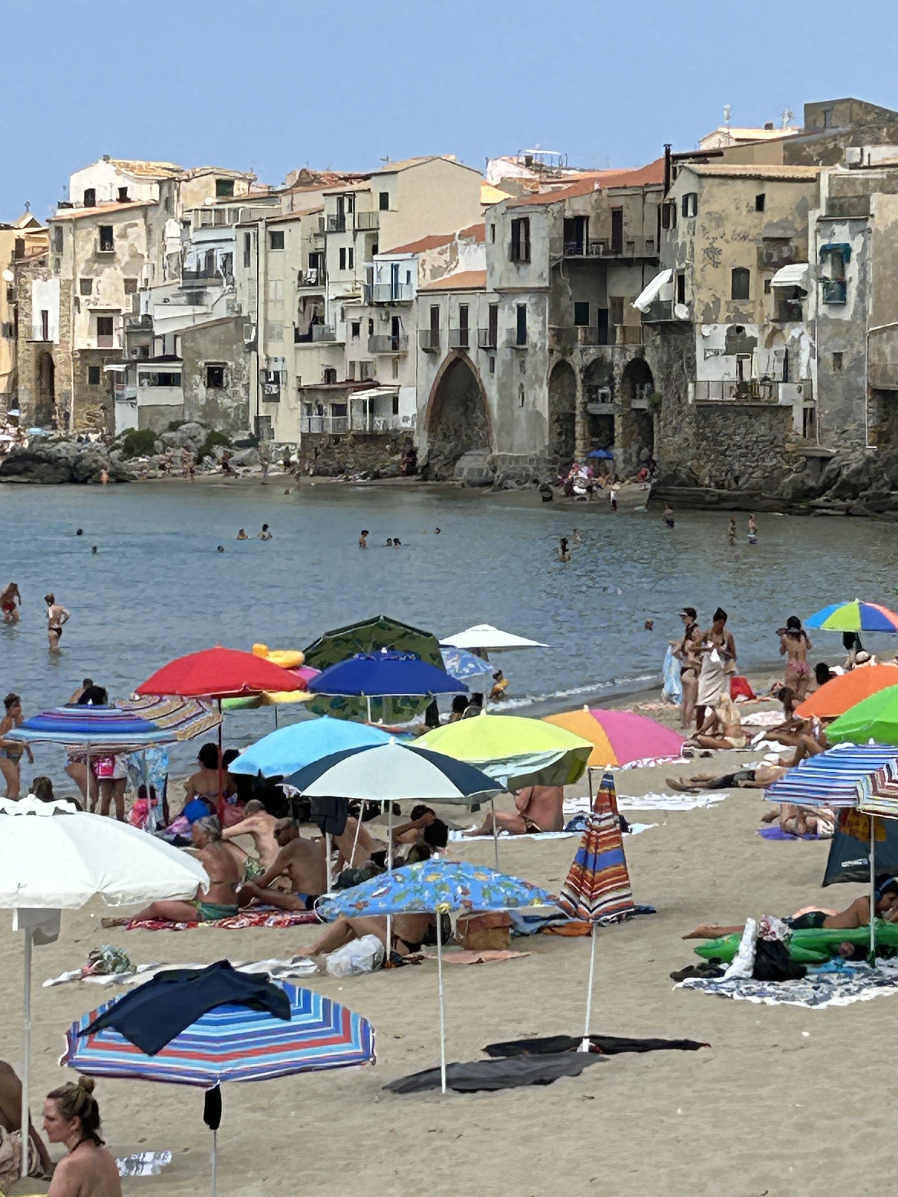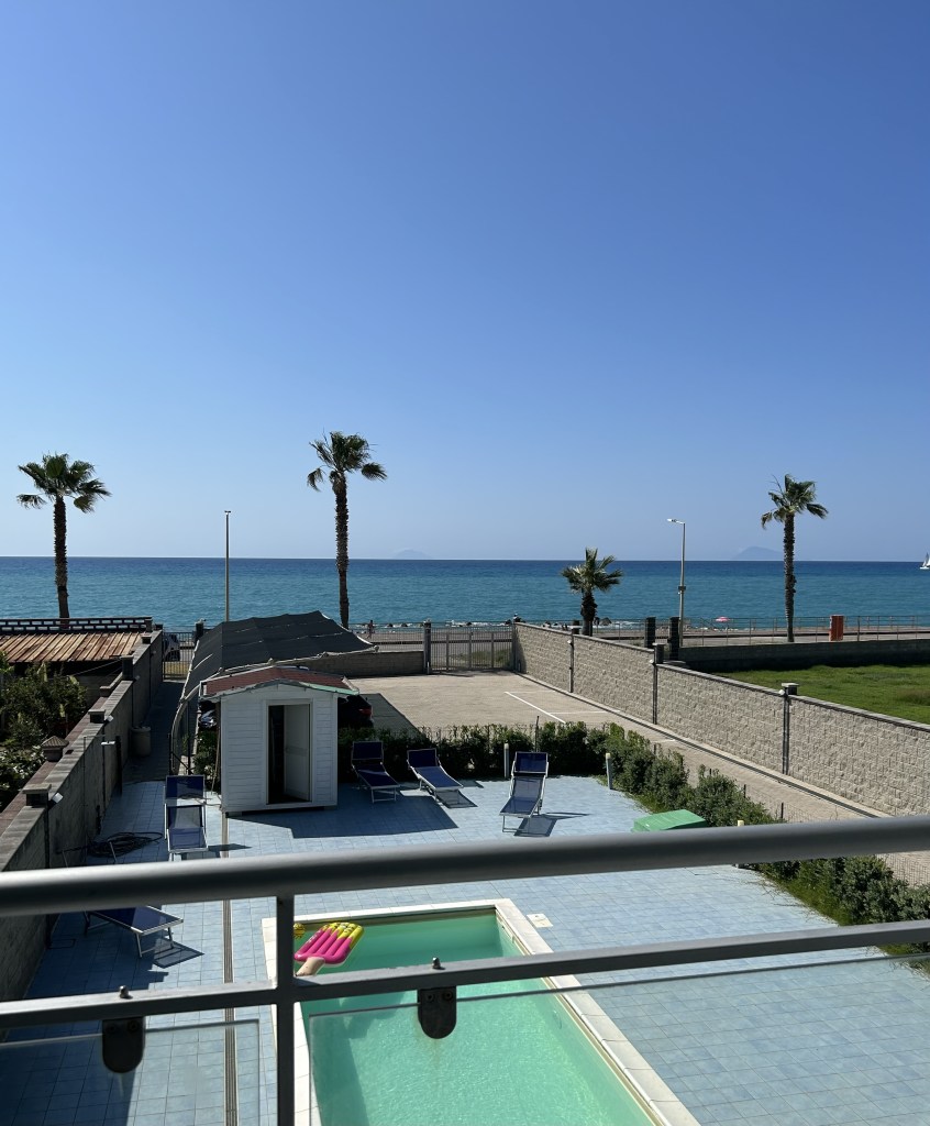 Sicily – Terraces d’Orlando – Capo d’Orlando. We chose to avoid the tourist hot spots of Sicily. Capo d’Orlando is more of an Italian holiday location, although it was also full of permanent locals. Although the apartment was a bit dated, it was spacious, right on the beach and had a huge balcony perfect for watching the incredible sunsets. The tiny pool gradually became greener each day until it resembled a large manky pond. We avoided it and floated in the brilliantly sparkling warm sea.