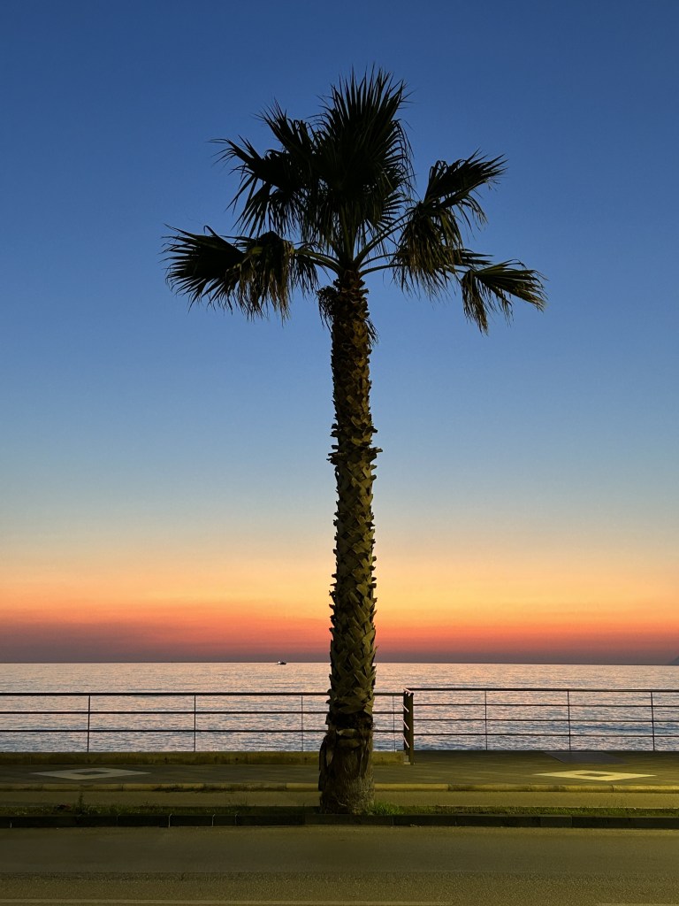 Every evening we joined the folk promenading along the beachfront. It was a fantastic walk. Apart from the the stunning sunsets, beach club restaurants overlooking the water opened up as the sun went down, lining the pavement. We walked every night enjoying the sunsets and people watching – and checking out what was on their plates!