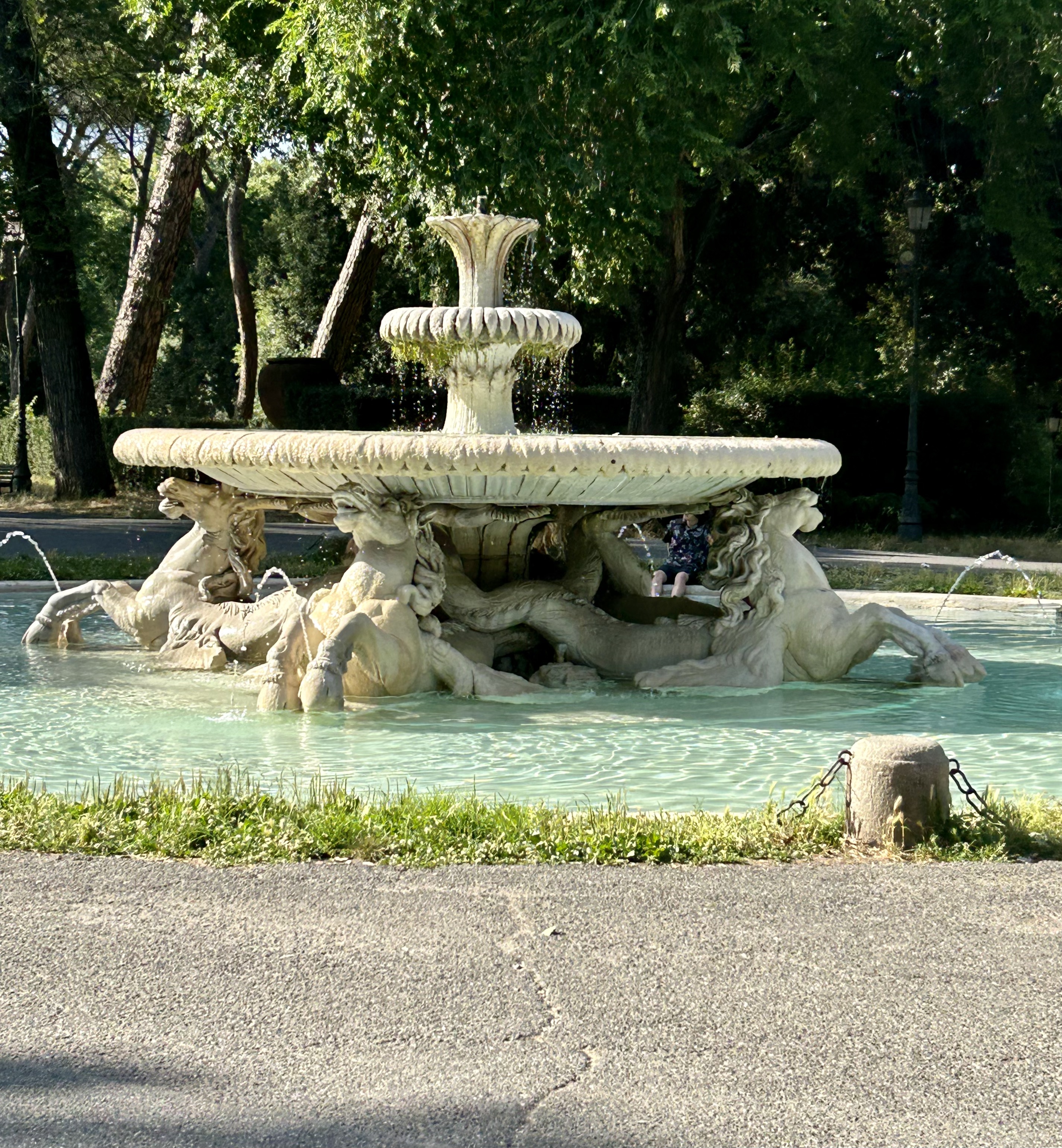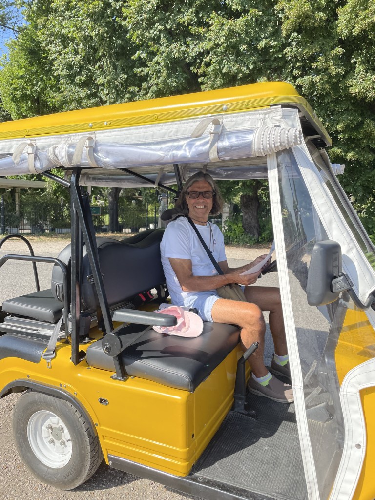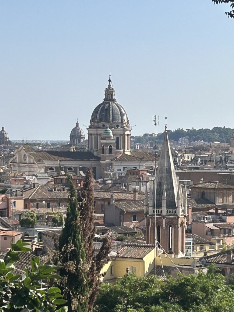 We did the tourist thing and hired a golf buggy to traverse the gardens of Villa Borghese. Excellent views over Rome but the gardens are quite run down and not terribly inspiring. The heat was probably not helping as everything looked quite parched. We had a fun hour racing masses of other people on a variety of wheels from push bikes through to a train.