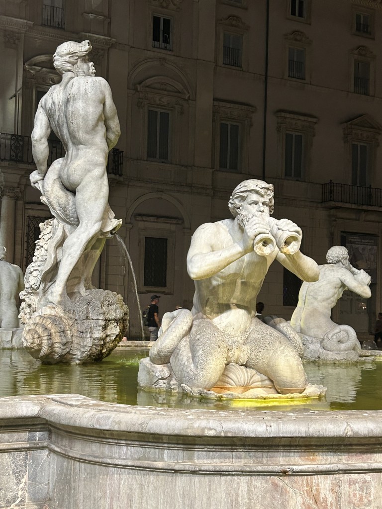 Walking around Rome in high 30’s C is not easy. The summer crowds are intense. I have never seen this beautiful city so clogged with tourists. But we are in bella Roma, it is the last four days of our trip, so we brave the heat and crowds and manage to see quite a bit despite sweating profusely.