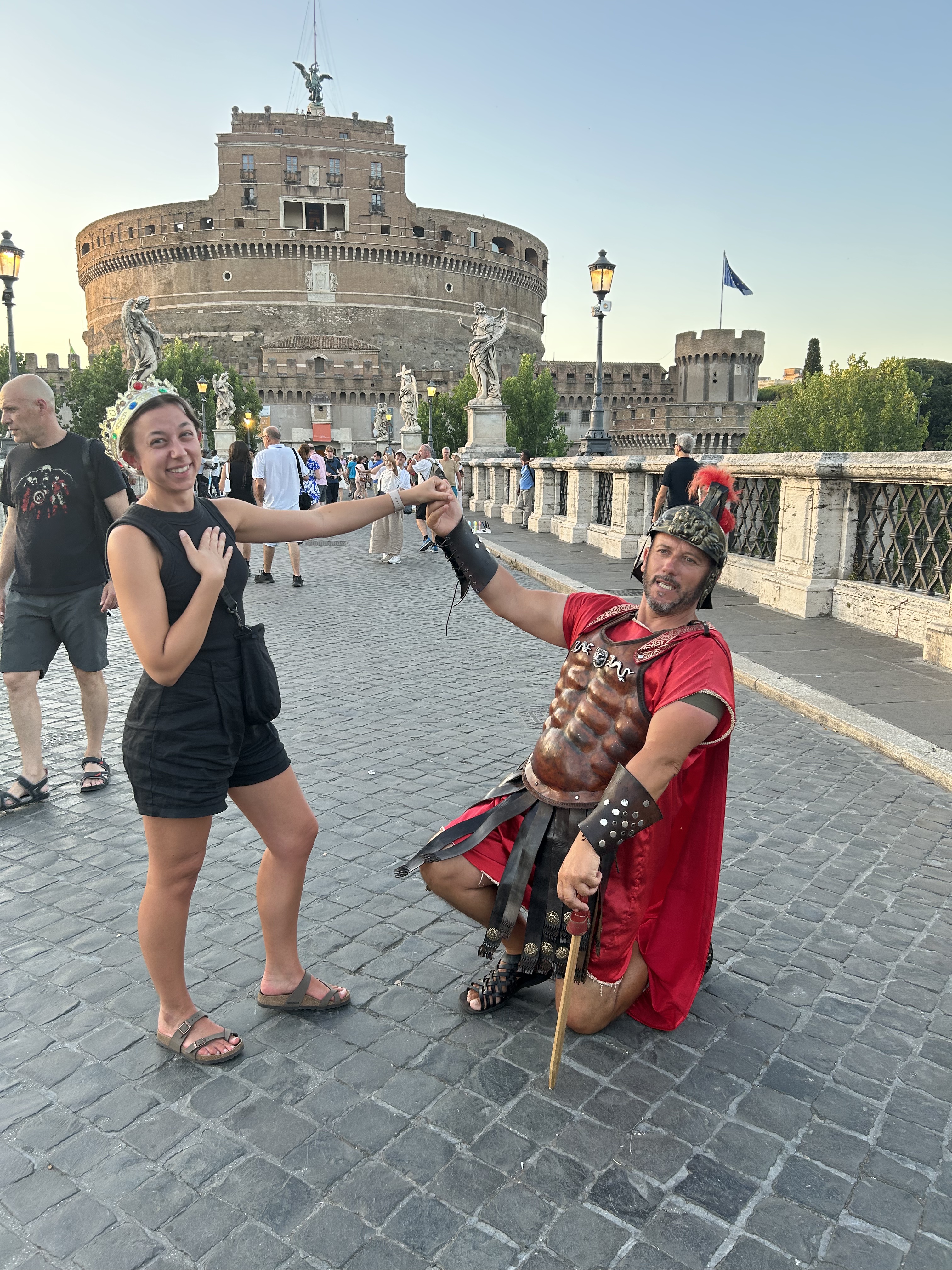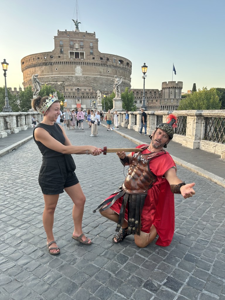 A visit to Rome is not complete without the illegal gladiator photos. Our daughter did this ten years ago as a teenager. We had to have an updated set of photos. We bargained over his fee. I offered him two Euros. He asked for ten but graciously accepted four. Very amusing performance. Well worth a few gold coins.