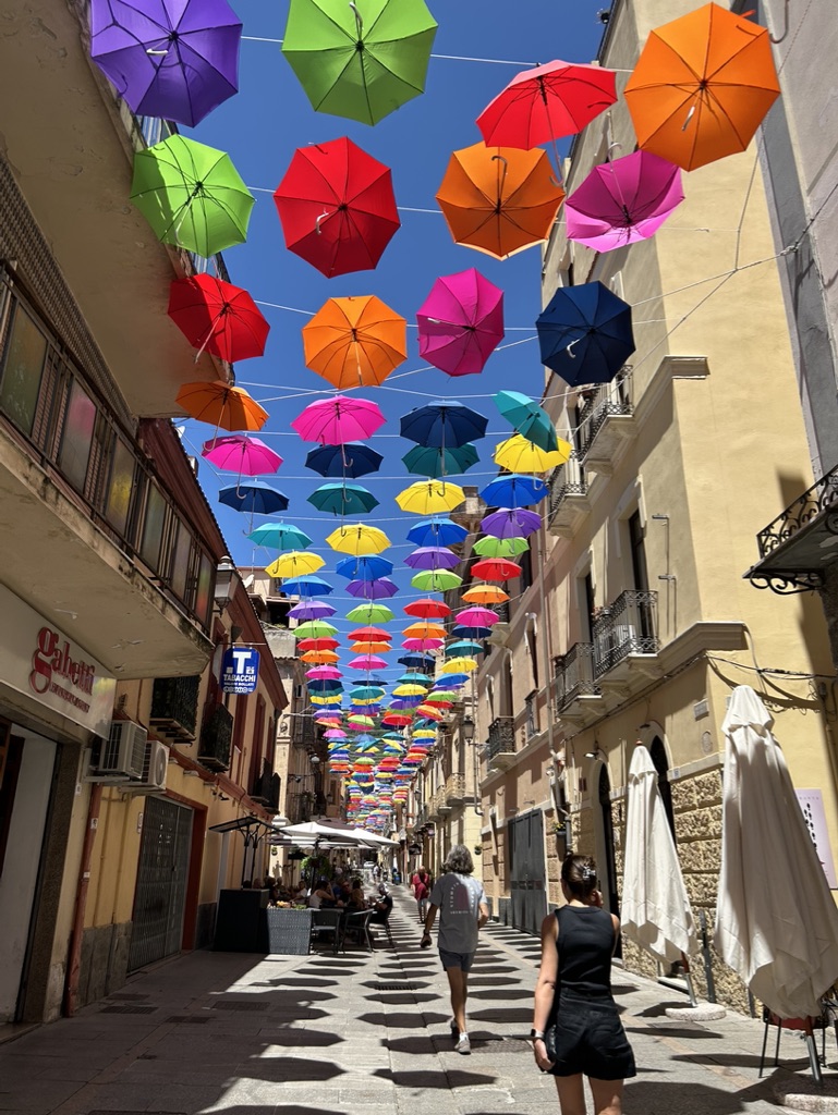 Cagliari old town is visually and atmospherically a joy. Every turn has something delightful to see. It is joyous. By day the streets are quiet, but at night the old town is alive with colour and people.
